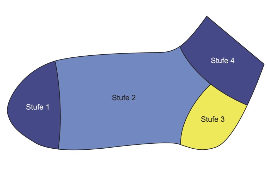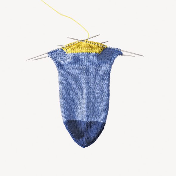 Die Zunahmen von Rist und Ferse enden stets in der gleichen Runde.