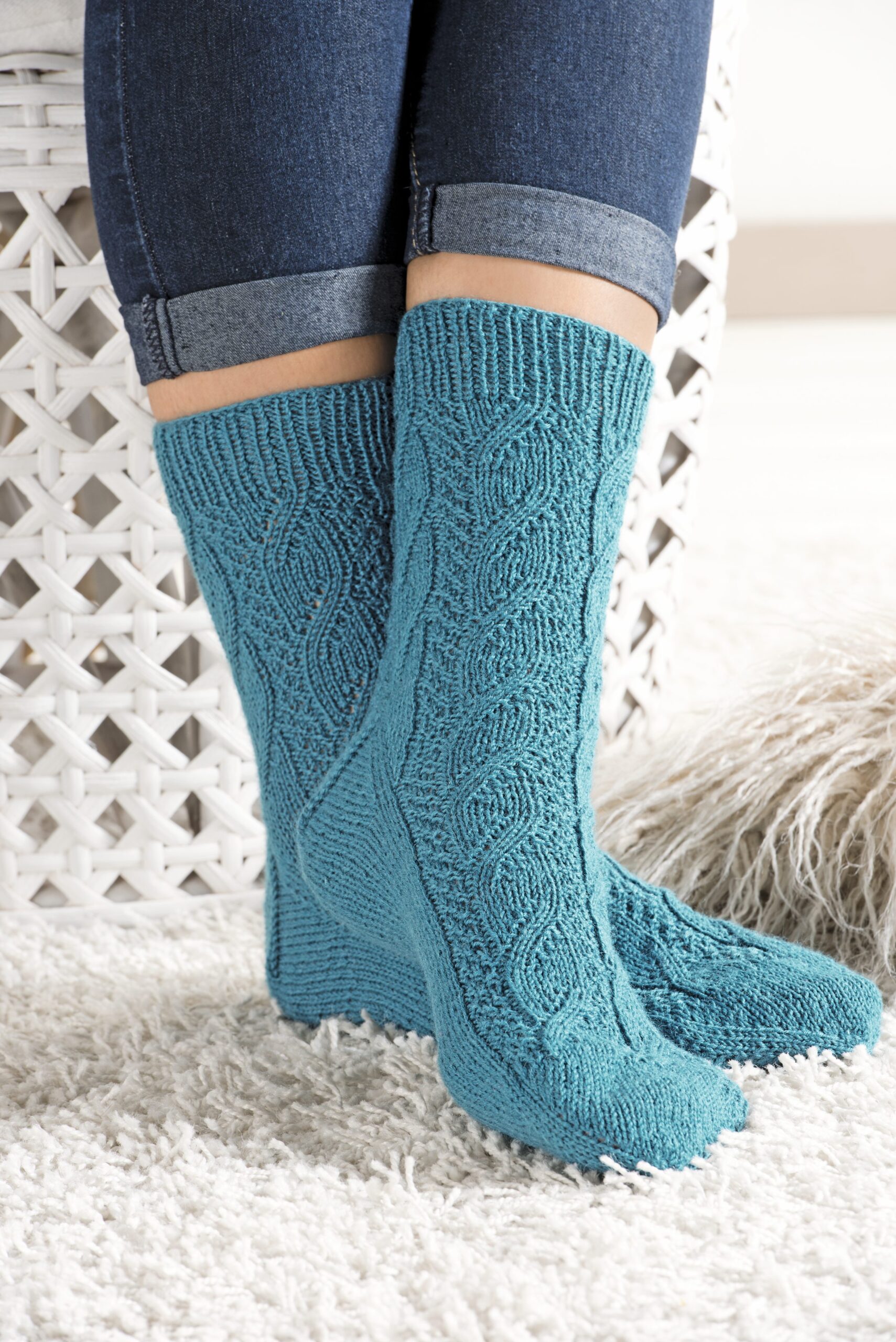 100 g 4-fädiges Sockengarn in Petrol, am besten ein Garn verwenden, dass aus 75 % Schurwolle, 25 % Polyamid besteht.
