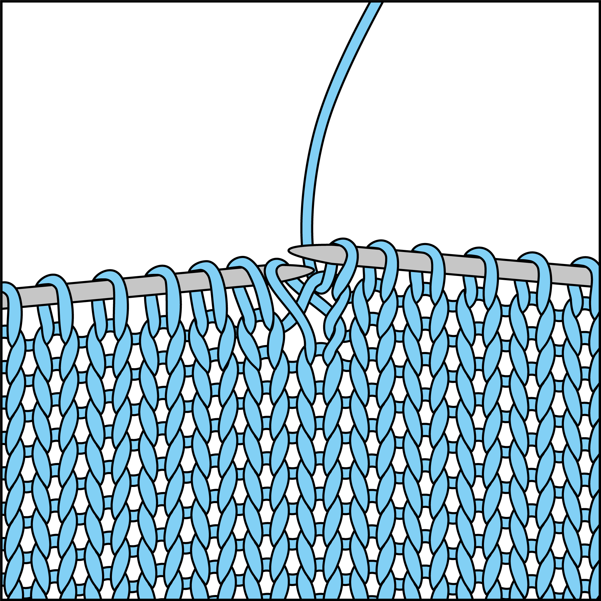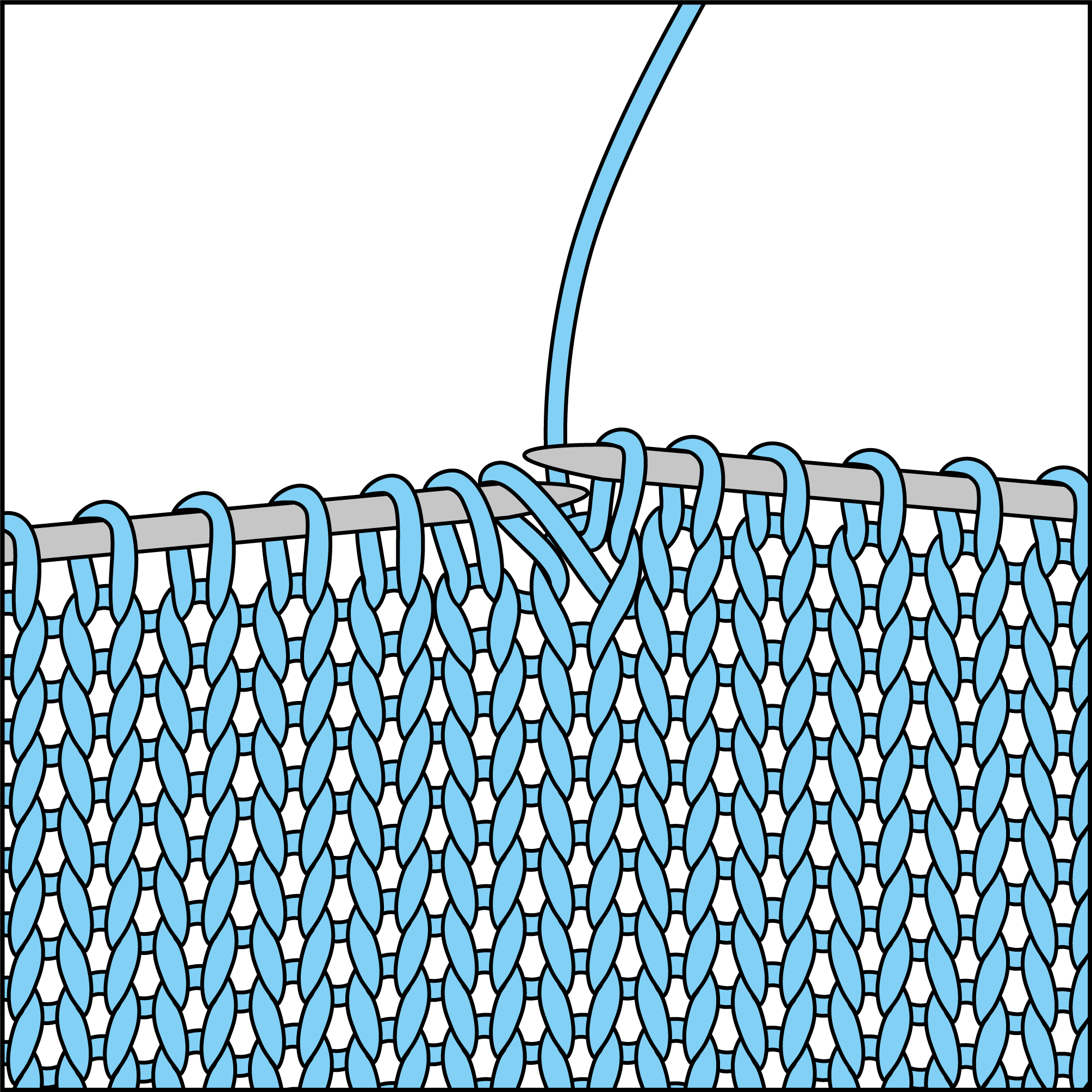 Glatt rechts: Hinreihe rechte Masche, Rückreihe linke Masche; in Runde stets rechte Masche stricken.