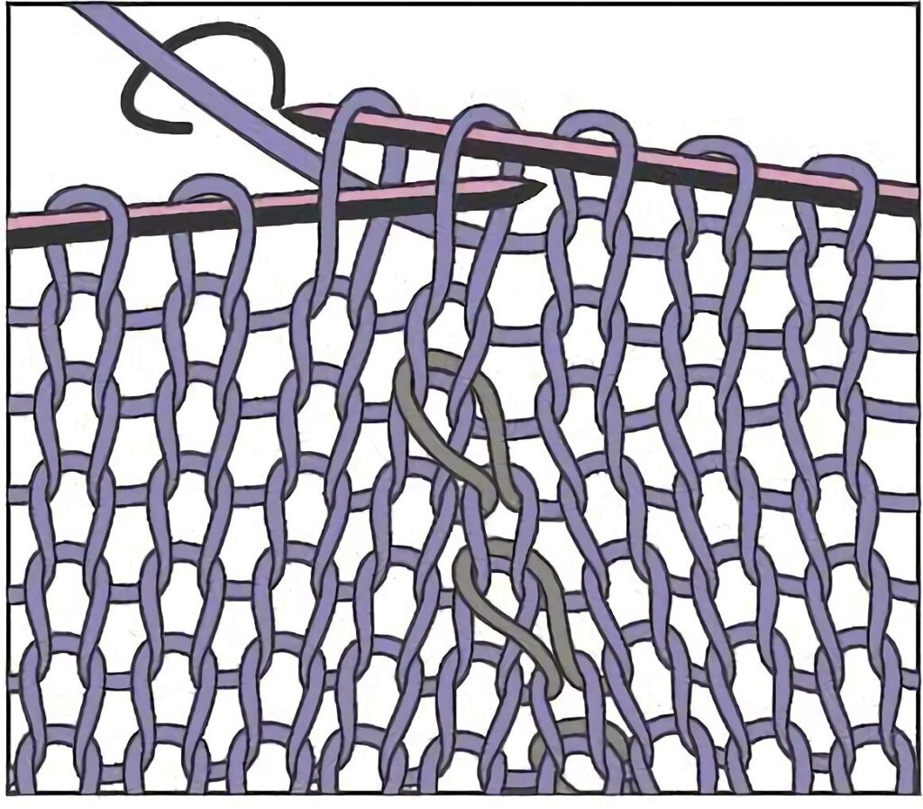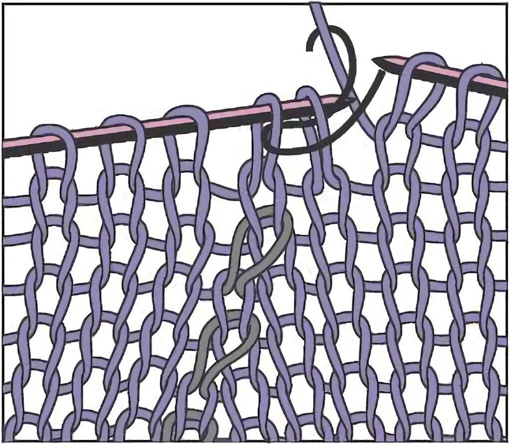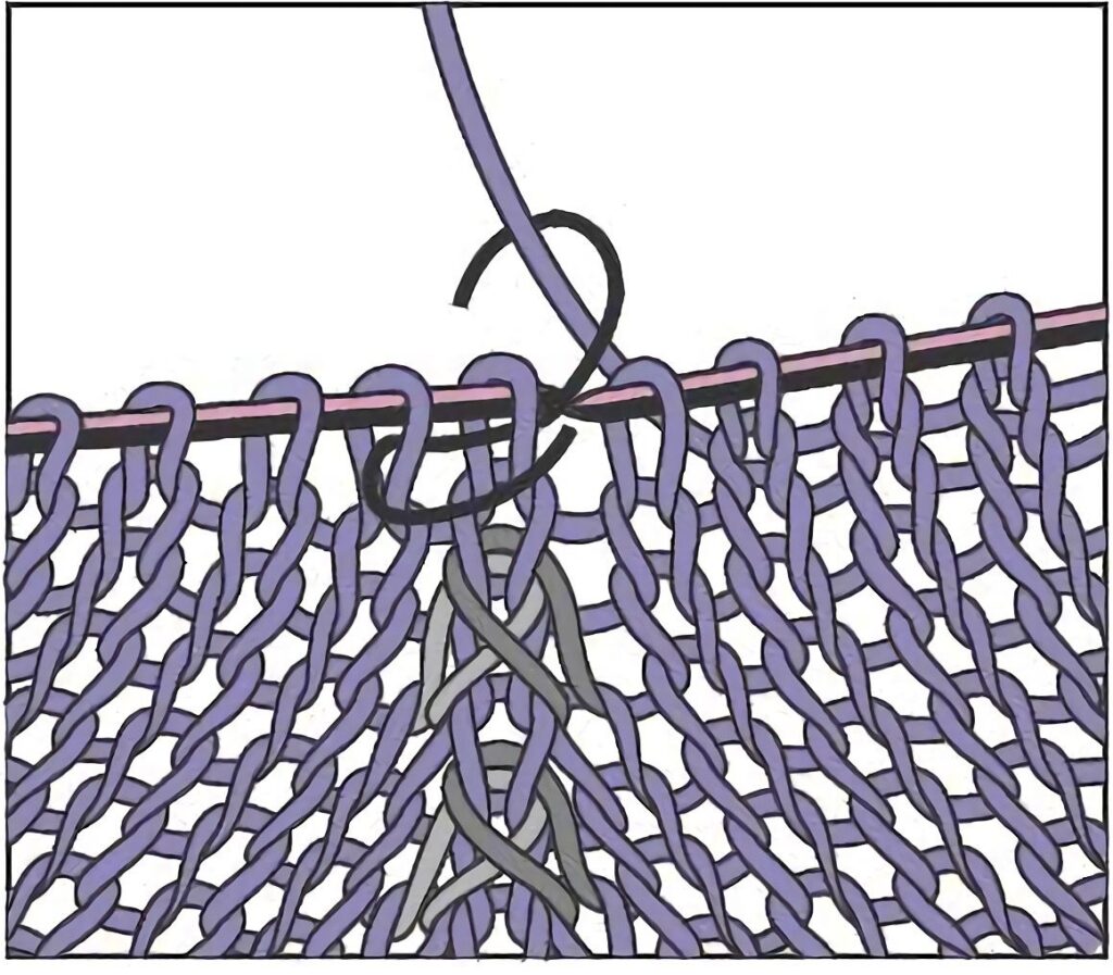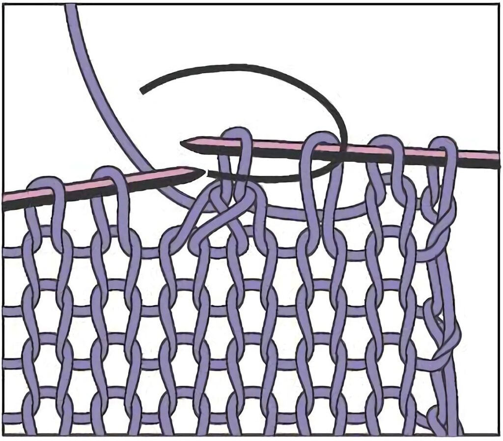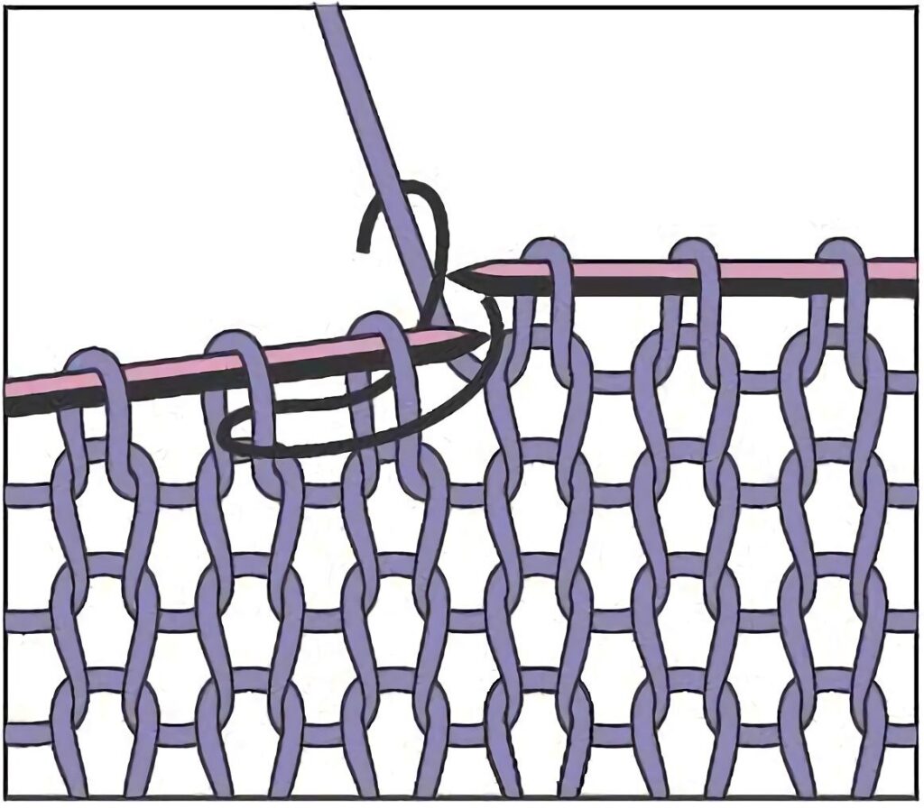 Hierdurch entsteht eine zusätzliche Masche, die grundsätzlich, sofern die Anleitung nichts anderes sagt, in der nächsten Reihe links abgestrickt wird.