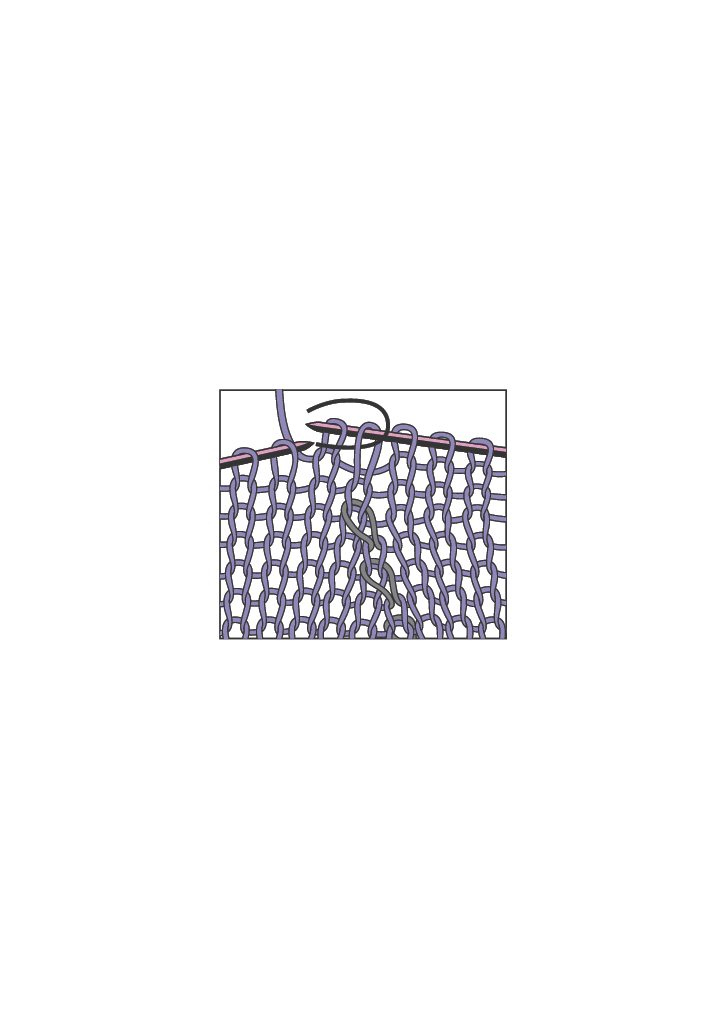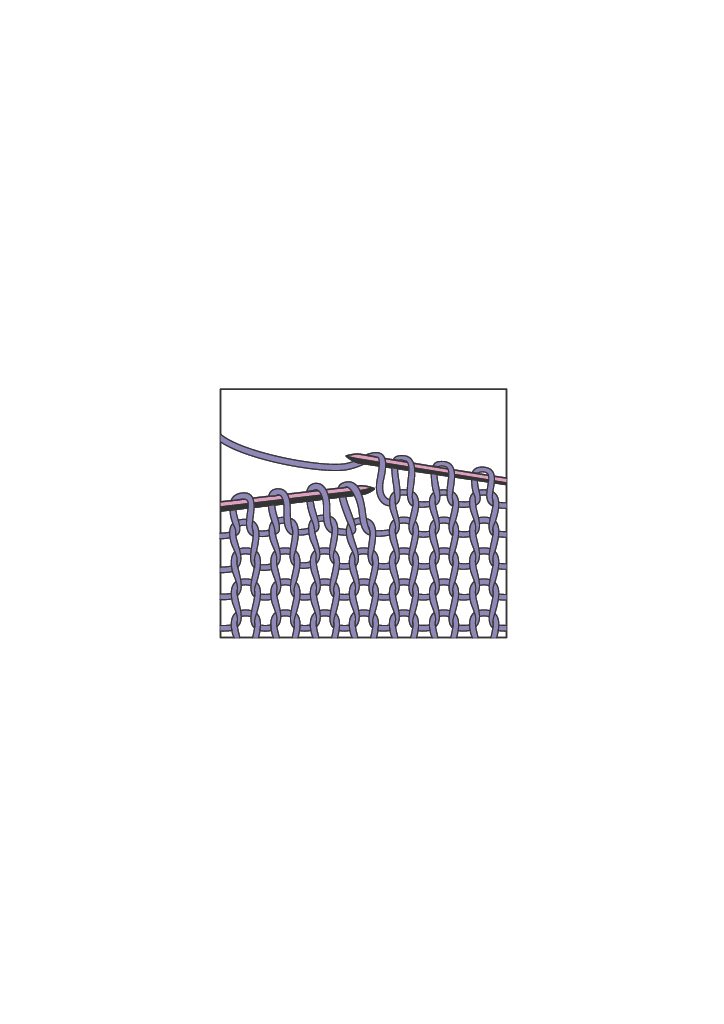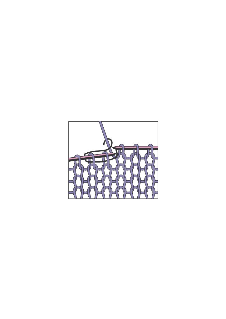 Am einfachsten ist der Umschlag. Er wird normalerweise stets in Hinreihen, also auf der Vorderseite der Arbeit gestrickt. Der Arbeitsfaden wird von vorne nach hinten über die rechte Nadel gelegt, die nächste Masche wird mustergemäß abgestrickt.