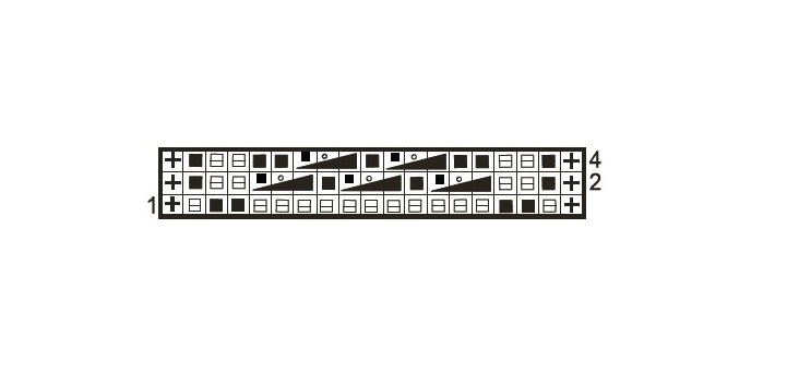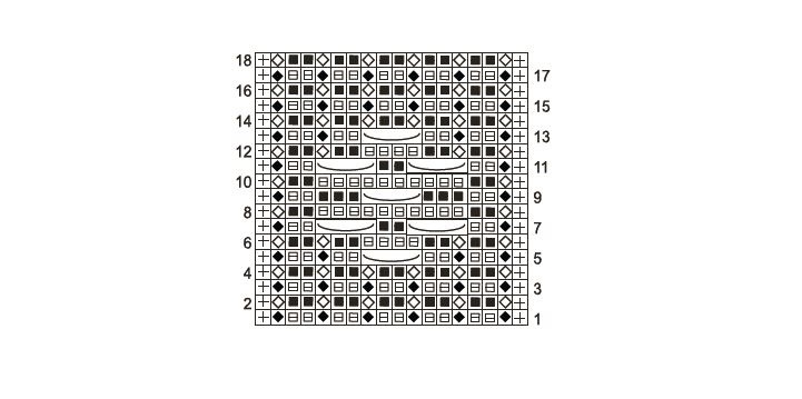 = Wickelmasche: 4 Maschen rechts stricken, diese 4 Maschen auf eine Hilfsnadel legen und den Arbeitsfaden 2x gegen den Uhrzeigersinn um diese 4 Maschen wickeln, dann die Masche wieder auf die rechte Nadel nehmen. In der Rückreihe links stricken.