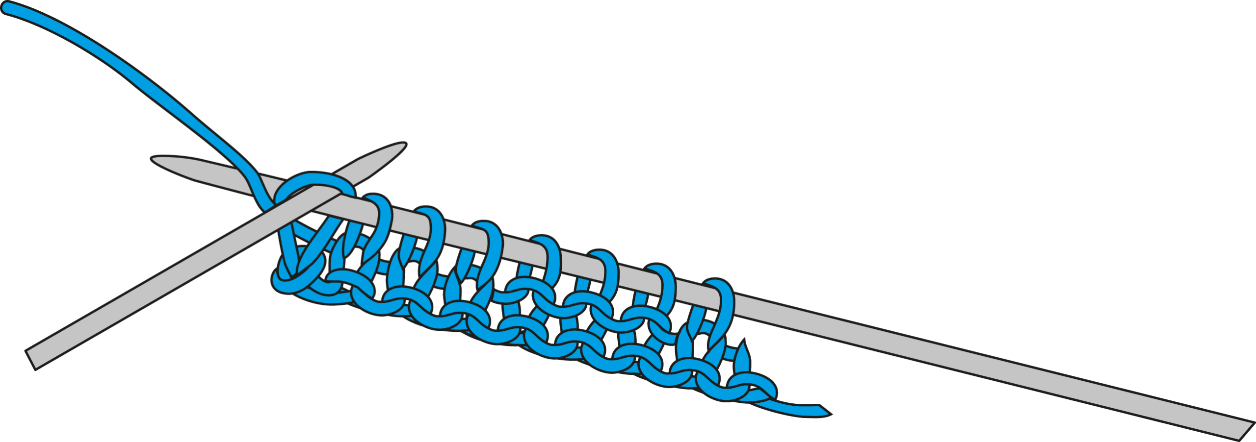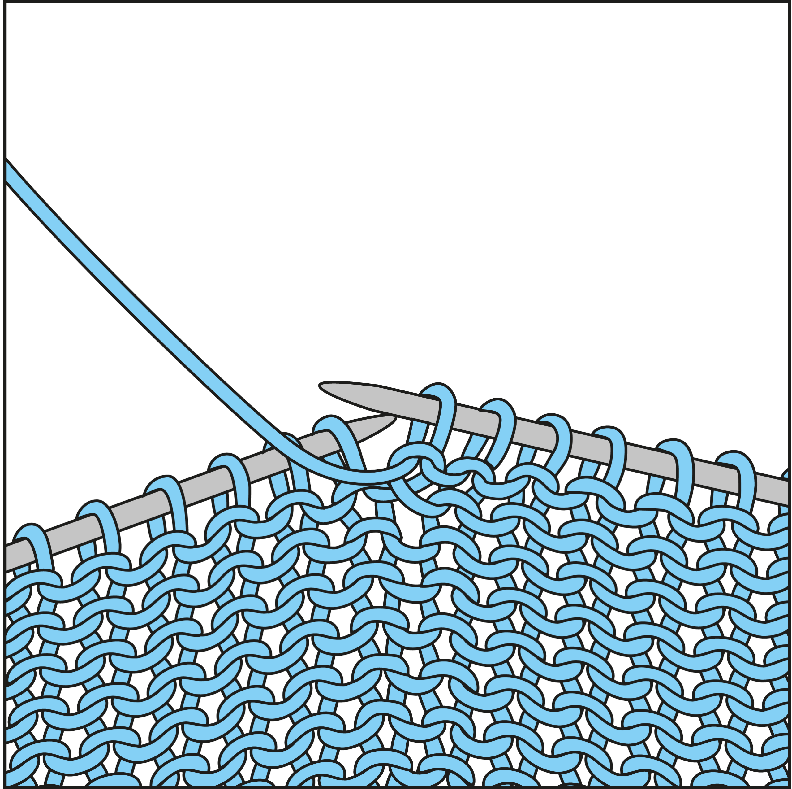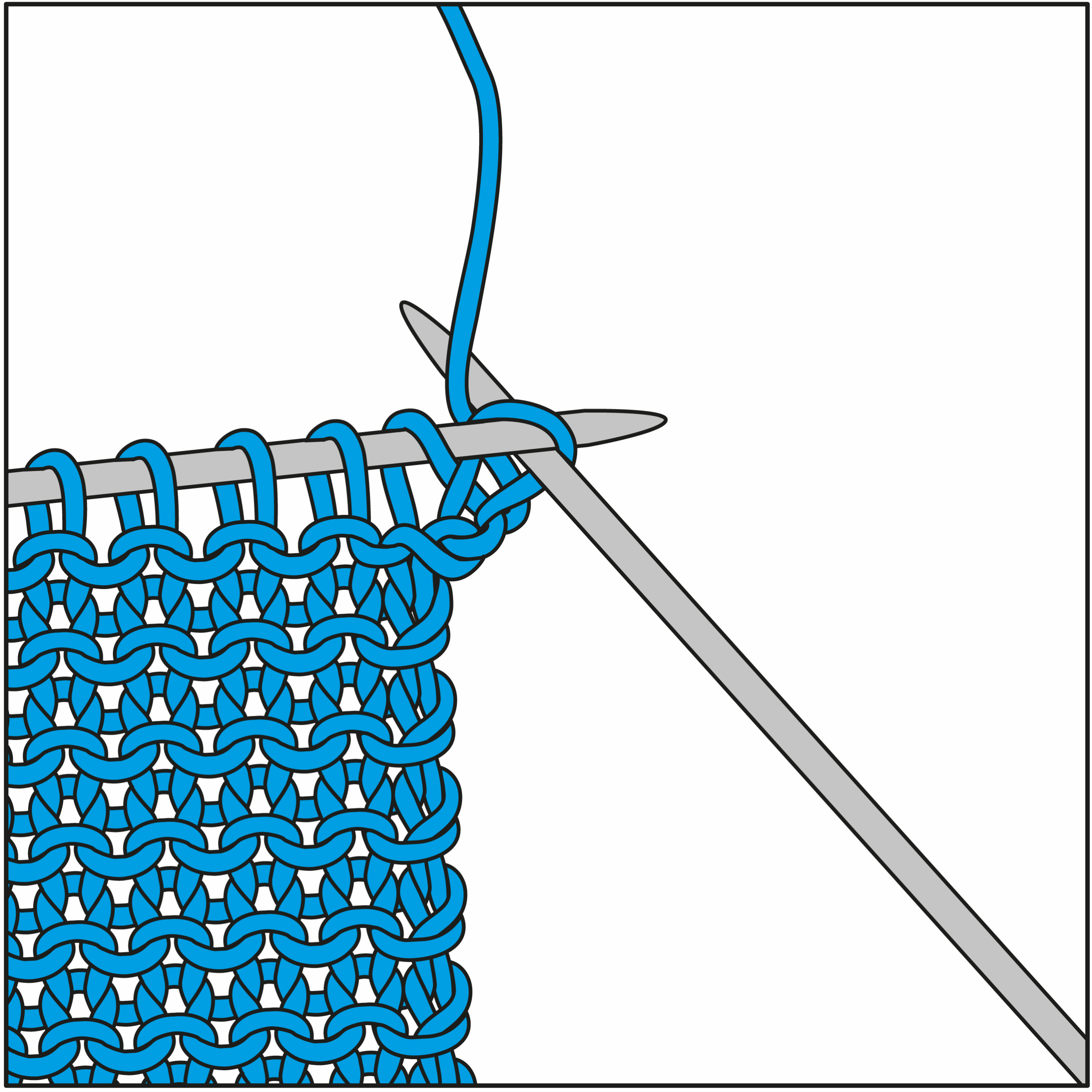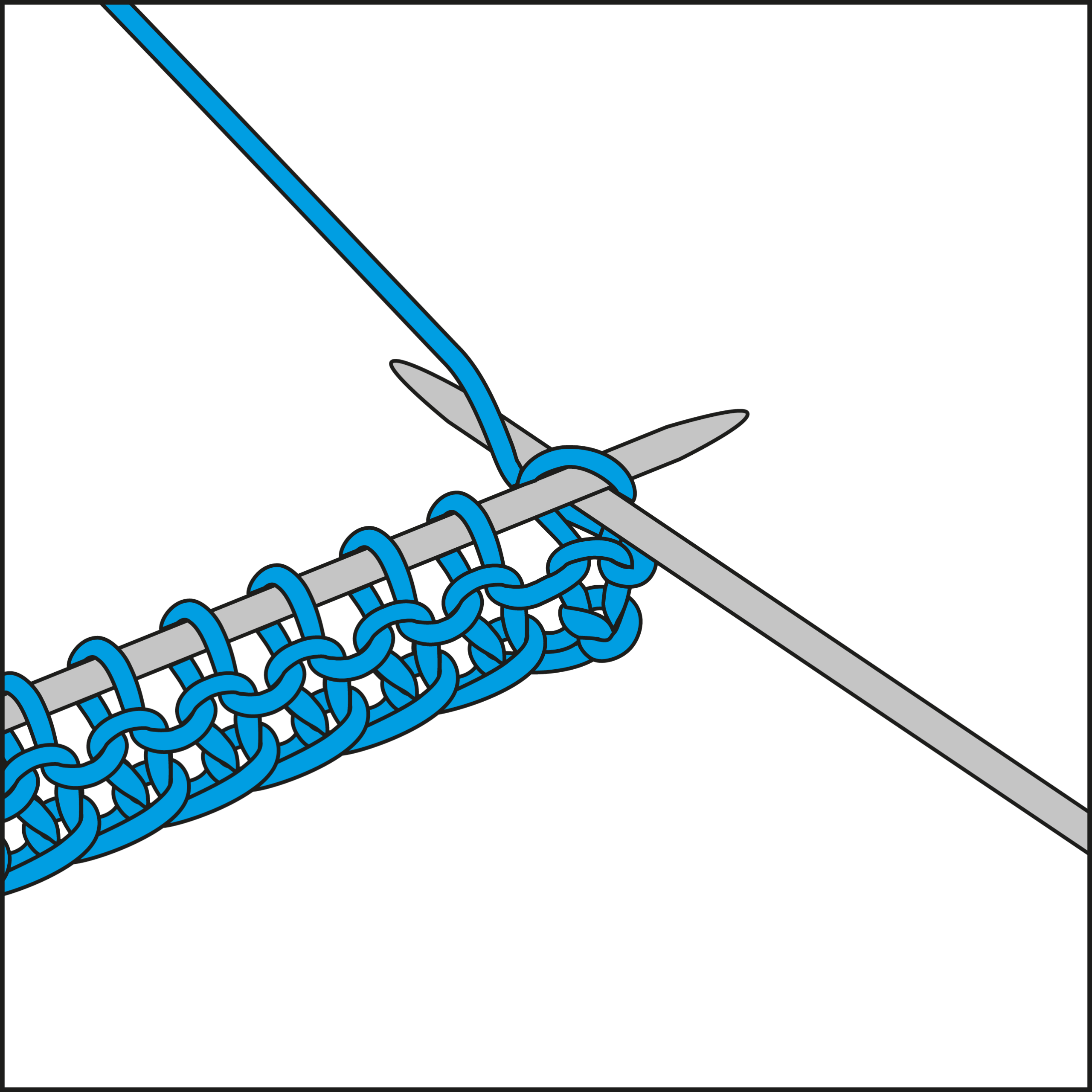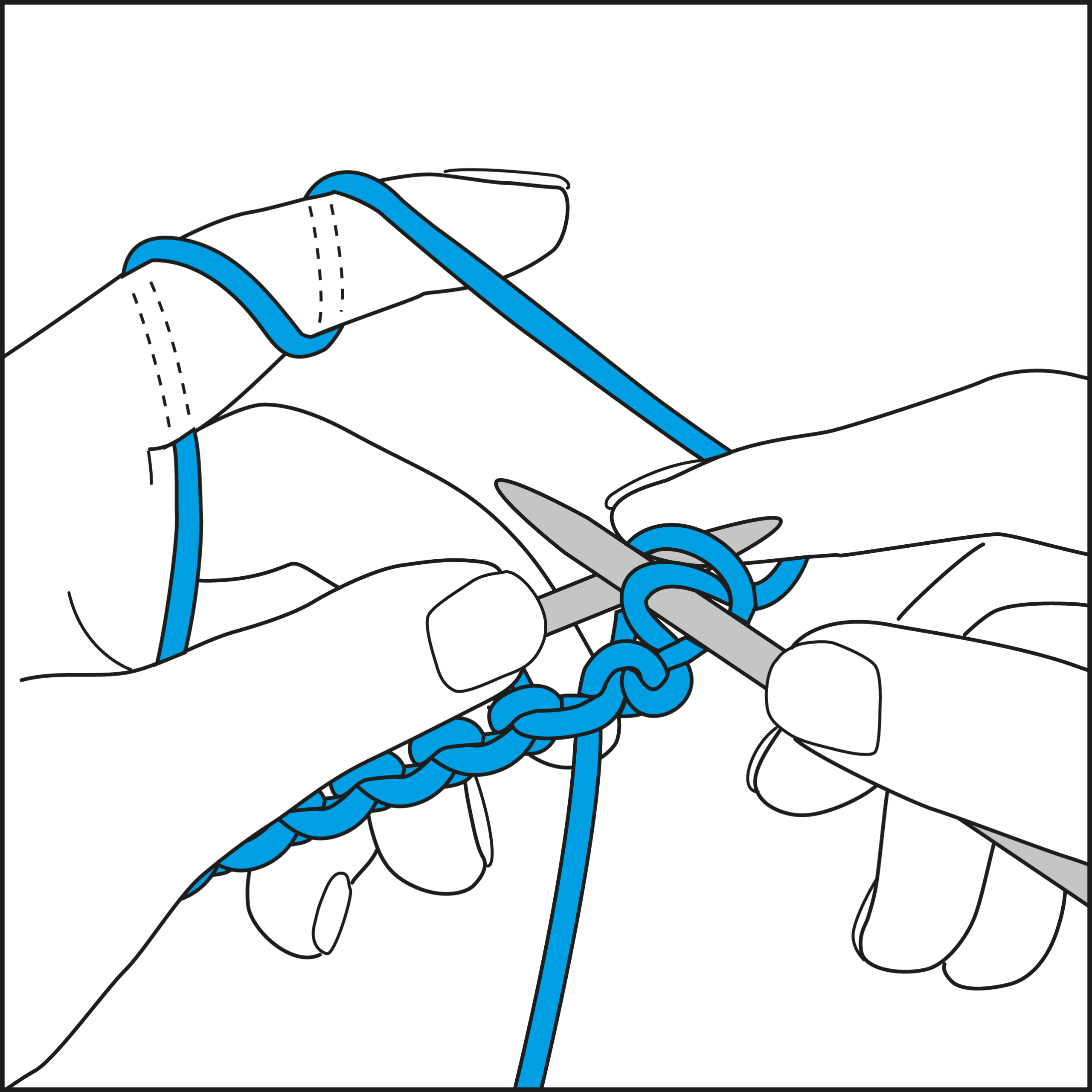 1. Dafür in die 1. Masche wie zum Rechtsstricken einstechen, den Faden zur Schlinge durchholen und auf der rechten Nadel lassen.