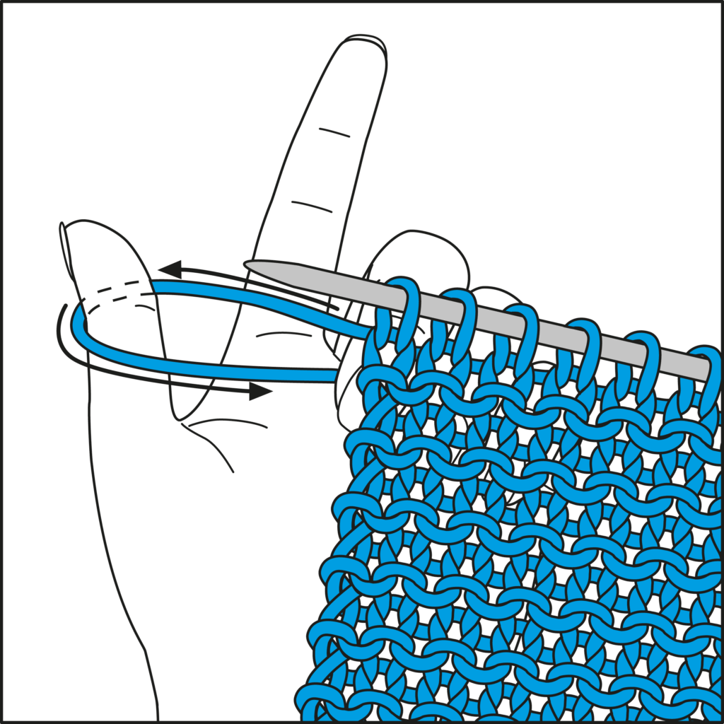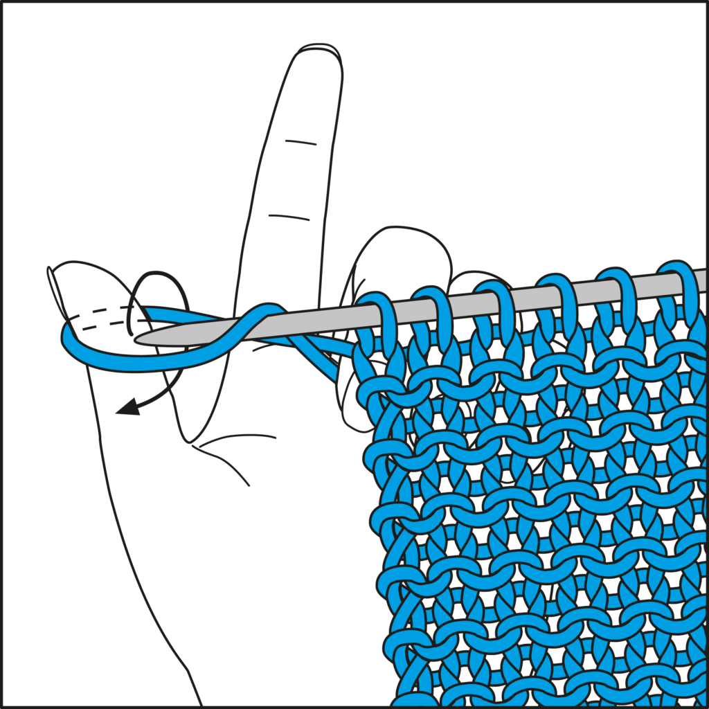 1. Die 1. Masche jeder Reihe stets rechts abheben. Dabei liegt der Arbeitsfaden hinter der Nadel.