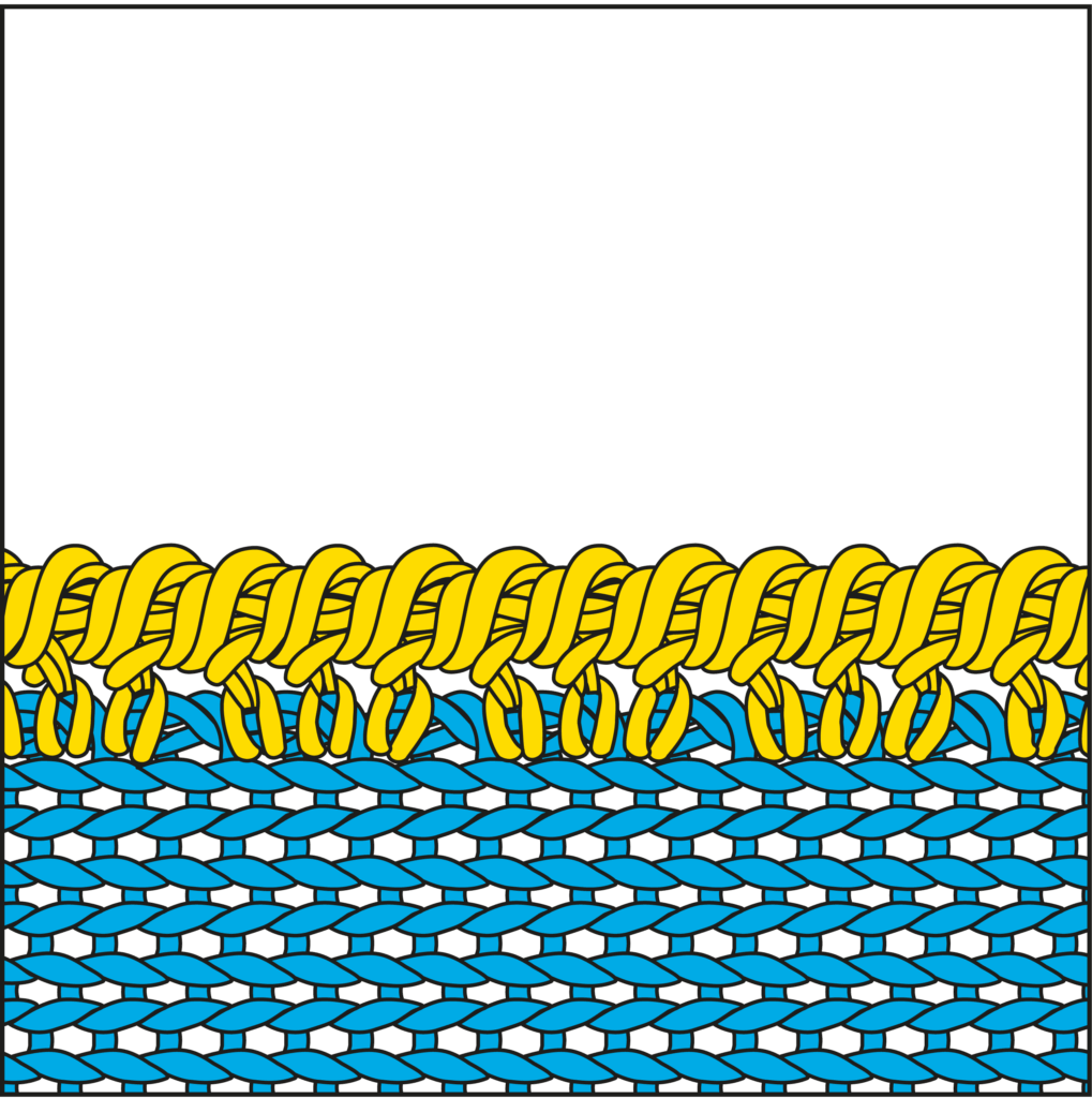 Eine vielseitige Naht, die schön flach liegt und das exakte Aufeinandertreffen von Farb- oder Musterstreifen ermöglicht, da sie auf der Vorderseite gearbeitet wird. Sie wird zum Beispiel zum Schließen der seitlichen Nähte oder der Ärmelnähte eingesetzt.