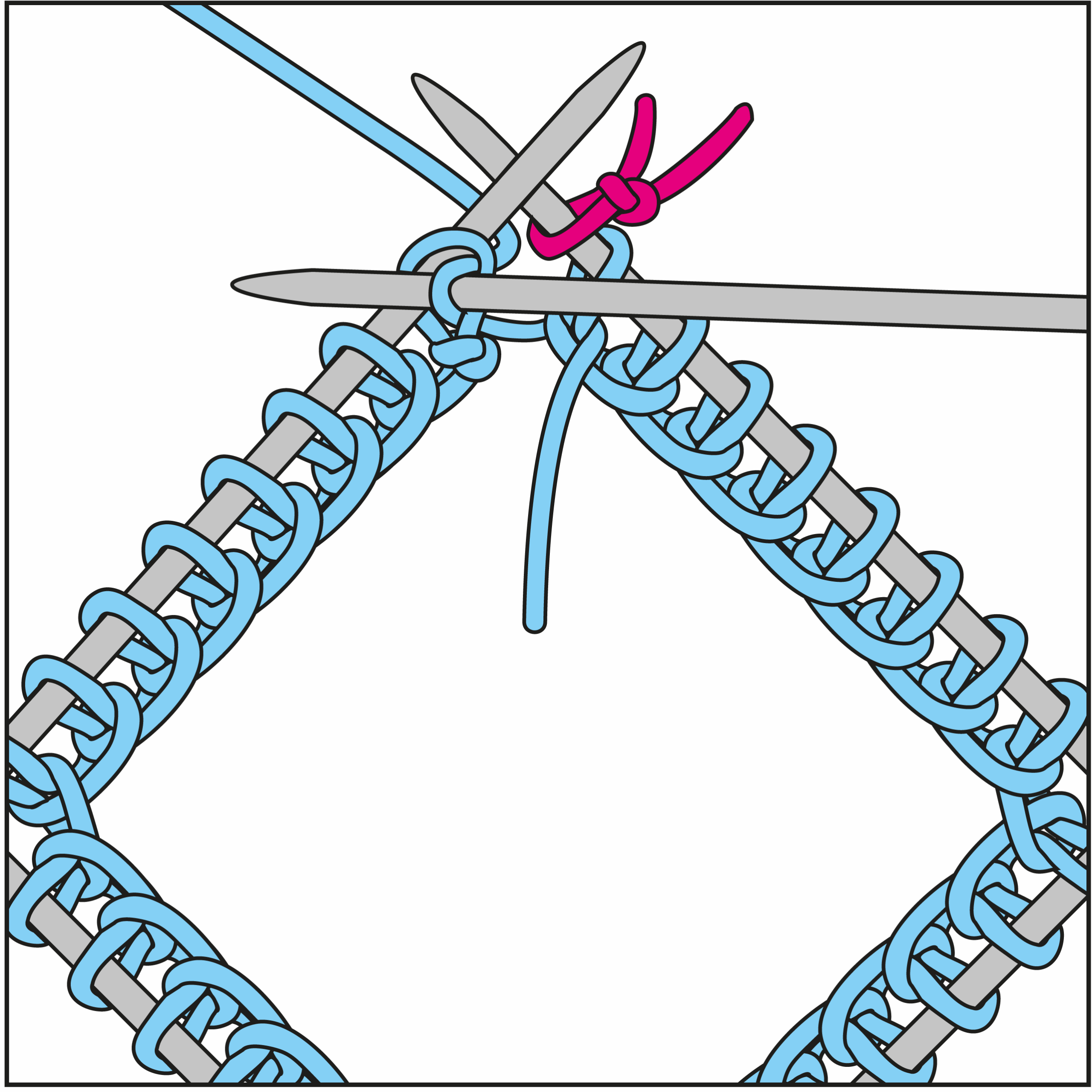4. Diese Zunahme stets wiederholen, bis die gewünschte Maschenzahl erreicht ist.