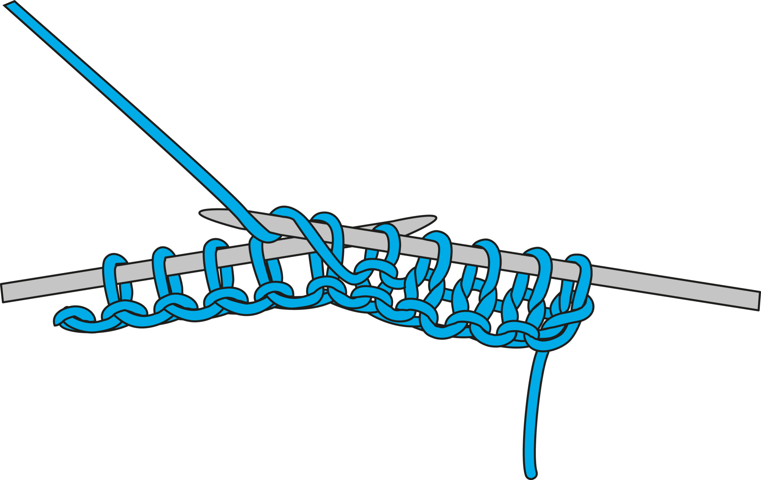 1. Wie bei einer linken Masche den Faden vorlegen, von rechts nach links durch beide Maschen stechen und den Faden durchholen.