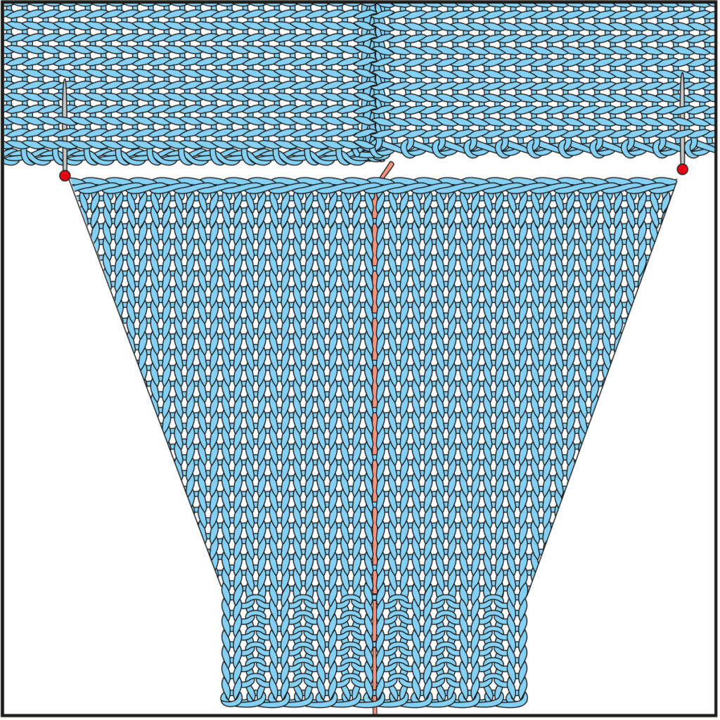 Die Zunahme stets wiederholen, bis die gewünschte Maschenzahl erreicht ist.