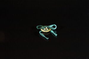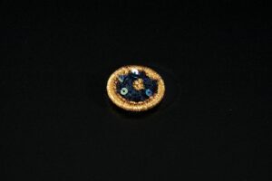 Um es einmal selbst auszuprobieren, braucht es – außer ein wenig Geduld – nicht viel: Messingringe in unterschiedlichen Größen sind im Bastelfachhandel erhältlich, dazu etwas Baumwollgarn und eine Sticknadel mit stumpfer Spitze. Unser Kurs zeigt dann Schritt für Schritt, wie die einfache Form der Dorset-Knöpfe – das Kreuzrad – entsteht. Verschiedene Varianten von Rückstichen und mehr oder weniger Speichen ermöglichen weitere, sehr individuelle Formen. Auch die Verwendung unterschiedlicher Garne und Perlen lassen wirkungsvolle Unikate entstehen, die dann ihre ganz eigene Geschichte erzählen.