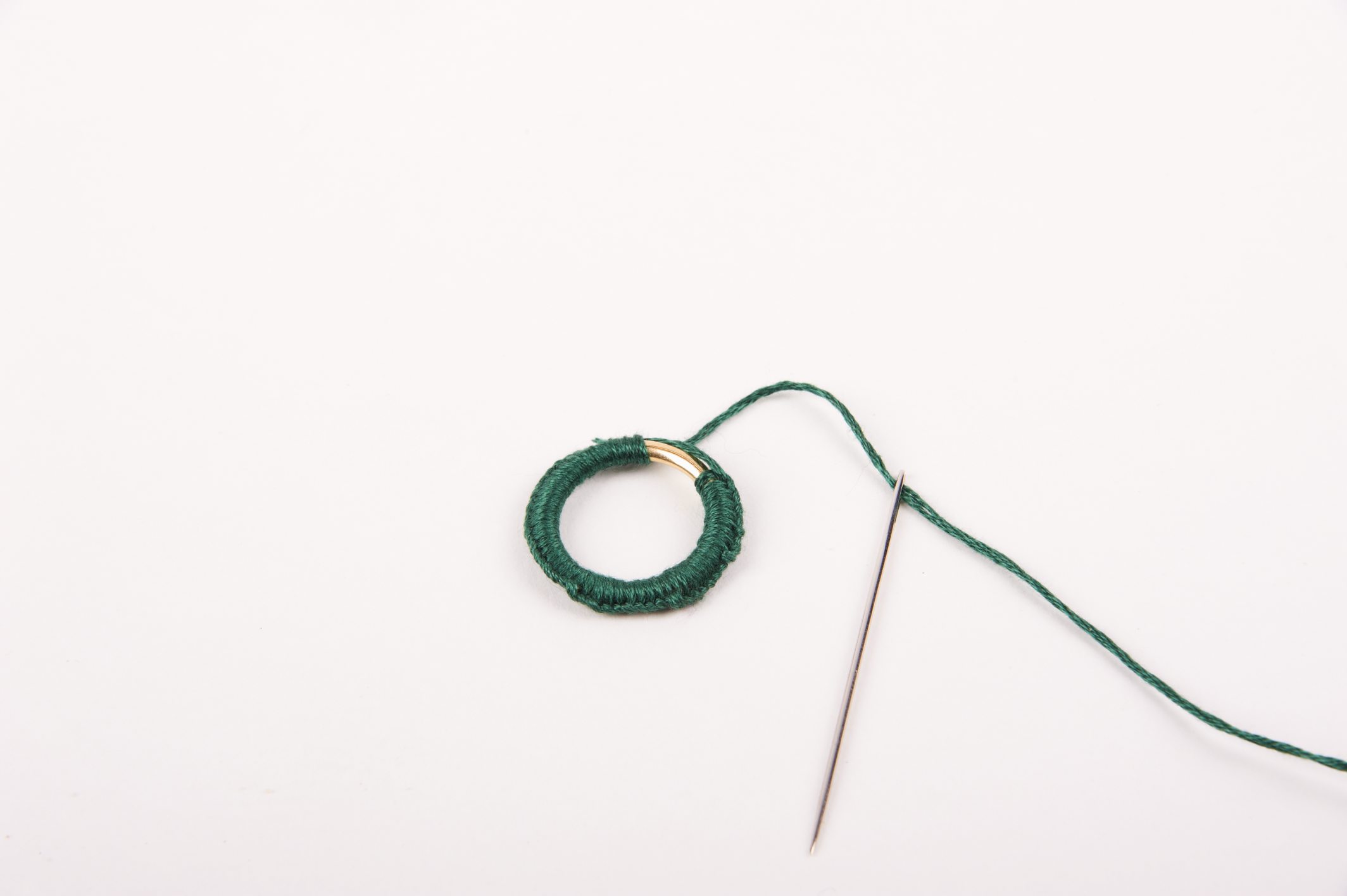 Den Ring sehr dicht mit Knoplochstichen wie gezeigt umstechen.