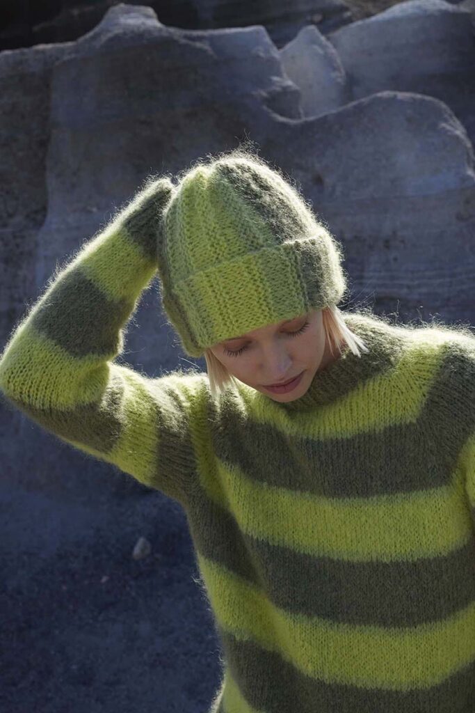 Sometimes, all you need to top off the perfect outfit is a cozy hat. REFRESHING BREW blends various shades of greens, keeping your mind sharp in knitting and your ears warm in wearing it.