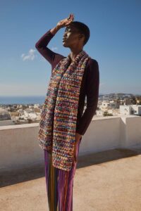 The BLISSFUL MOMENT scarf is all about getting lost in the rhythm of knitting. The combination of a stitch pattern that is just engaging enough and an ever-changing yarn create a meditative experience, letting you fully immerse yourself in the process.