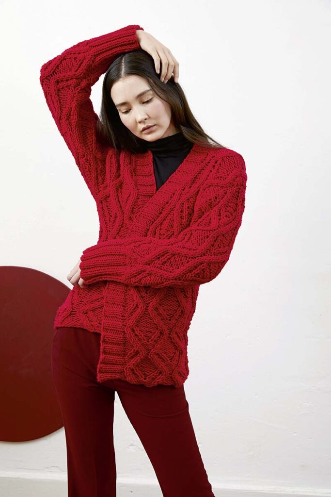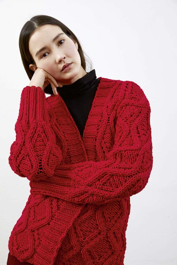Strickanleitung in den Sprachen DE, FR, NL, EN.