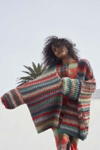 This cardigan harmoniously blends a vibrant spectrum of colors, creating a visual symphony. With its kaleidoscopic hues, SPECTRAL SYMPHONY is not just a garment but a celebration of diversity, making it a fitting choice for individuals across a wide spectrum of styles and personalities.