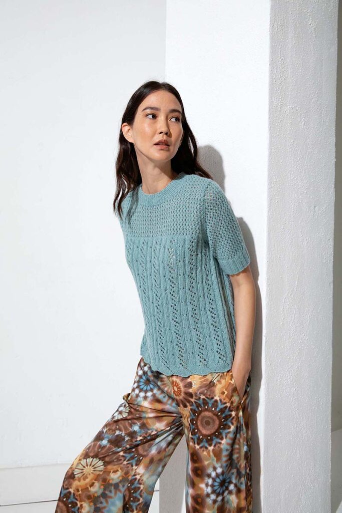 Strickanleitung in den Sprachen DE, FR, NL, EN.