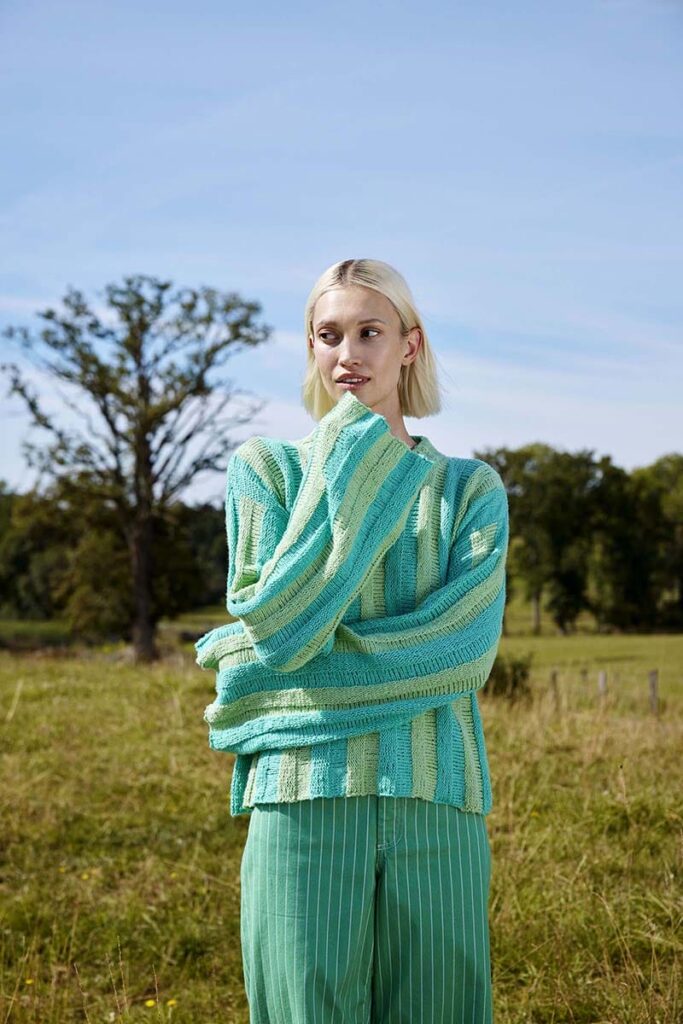 The DEEP BREATH sweater captures the soothing rhythm of knitting, mirroring the calming pattern of deep, steady breaths. Its design reflecting the visual rhythms found in nature, with each stitch flowing in harmonious cadence.