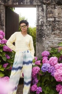 Crafted with a combination of knit and purl stitches, this sweater features a subtle geometric texture inspired by the gradual growth of a flower, from bud to its moment of PERFECT BLOOM. Let this design inspire you in turn to take your time and create the perfect sweater.