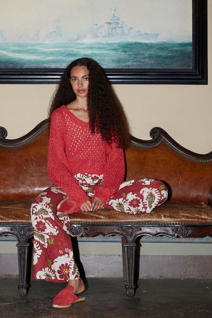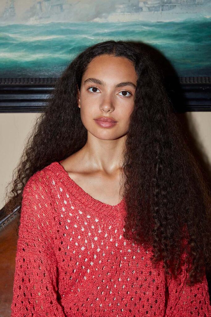 Gut Ding will Weile haben, so auch dieser Pullover. Das wunderschöne Muster dieses Pullovers ist verspielt und hat eine offen gestrickte Textur. Die Verwendung von Leinen und Baumwolle macht das Tragen dieses Pullovers einfach göttlich an warmen Sommertagen.