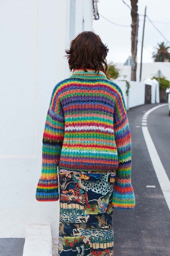 The colors you choose to adorn yourself with have a profound impact on your thoughts and emotions. Rest assured, with this vibrant TECHNICOLOR sweater, your life and your knitting are destined to be anything but dull.