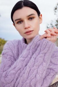 SOOTHING WHISPER is a sweater characterized by a soft, airy texture. Each stitch is light yet full of warmth, and the rhythm of the cables is soothing, making every row feel like a comforting embrace.
