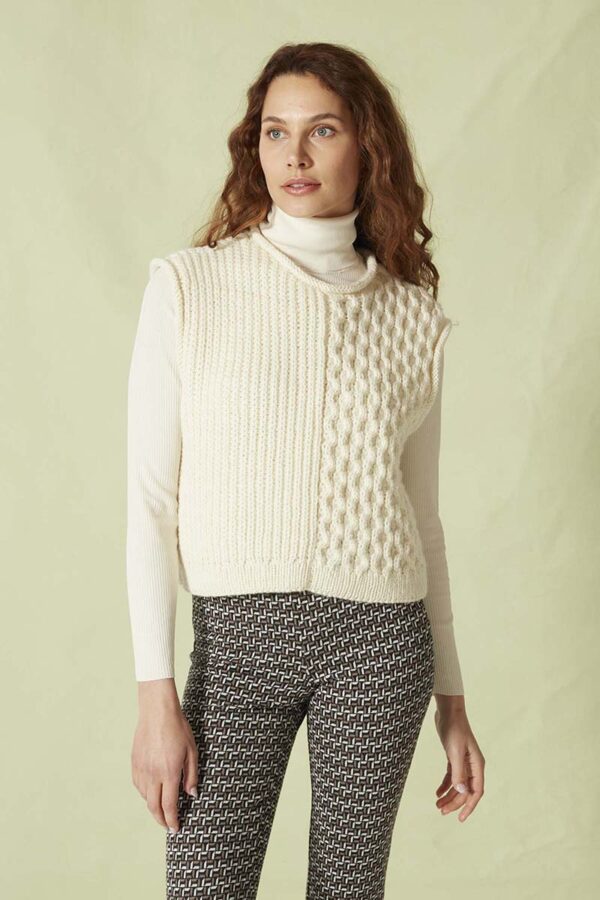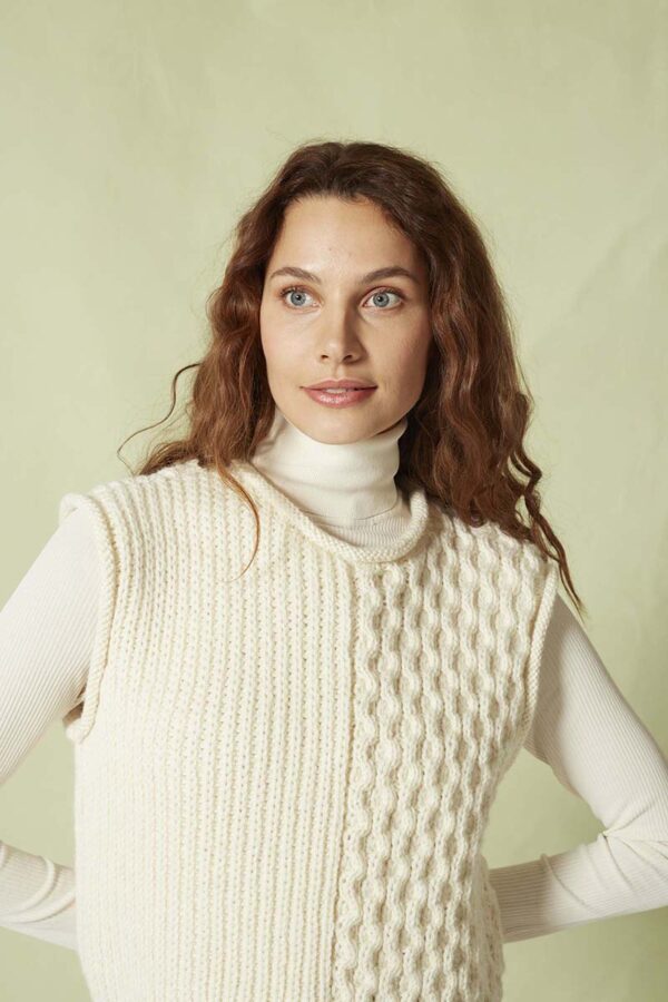 This garment serves as a reminder that achieving inner balance fosters a sense of outer calm and poise. The INNER BALANCE slipover showcases the perfect harmony of yarn and patterns, reflecting a serene equilibrium in its design. Wearing it, you embrace both aesthetic and emotional equilibrium, finding peace in every stitch.
