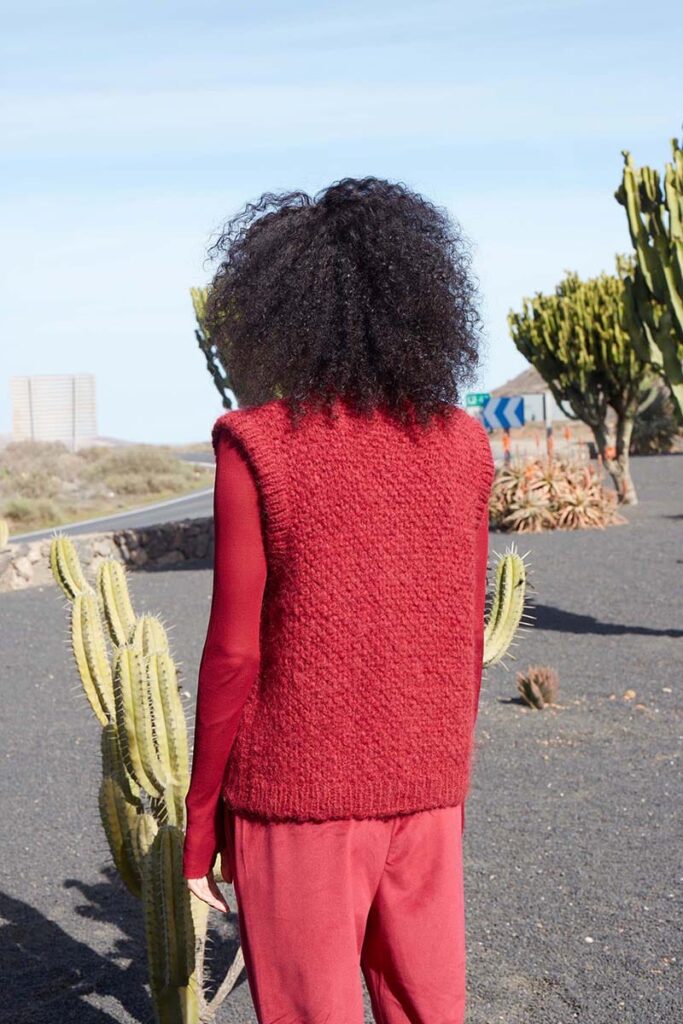 This textured vest is a meditative knitting journey. Intricately designed with a blend of knit and purl stitches, it creates a tapestry of tactile richness that mirrors the layers of calm found in a serene sanctuary. Embark on this project to discover your own, personal knitting sanctuary.