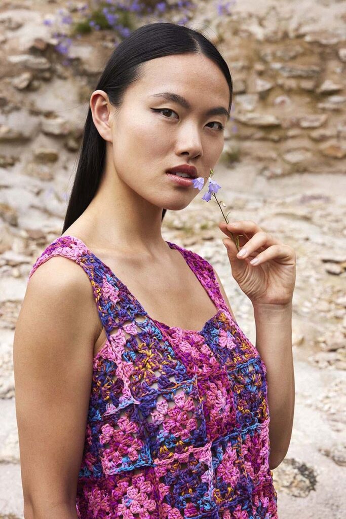 Just as wildflowers thrive uniquely in their own way, the WILDFLOWER granny square top embodies the spirit of creativity and personal expression. Each square blossoms from the inside out like a flower, with the multicolored yarn ensuring that every one is distinct. This top celebrates the beauty of crafting outside the box, reflecting the individuality of its creator.