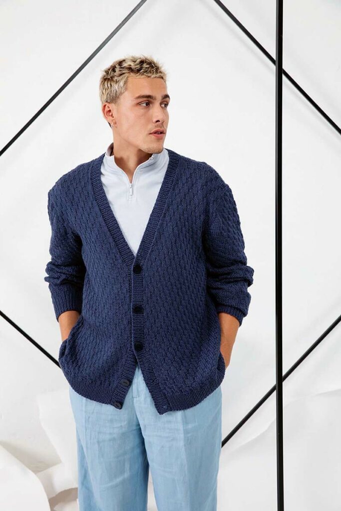 Strickanleitung in den Sprachen DE, FR, NL, EN.