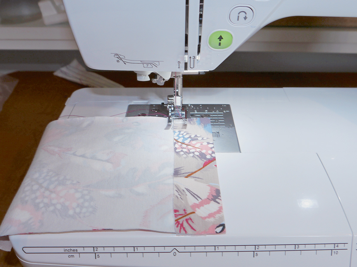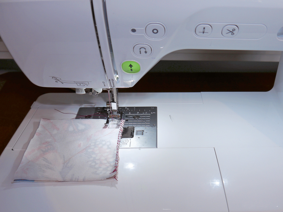 Tipp: Da die Naht nur 0,5 cm breit ist, muss der Stoff mit 0,5 cm Nahtzugabe zugeschnitten werden.