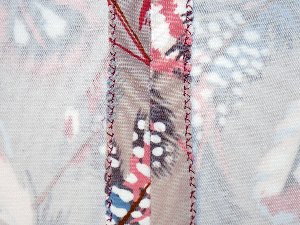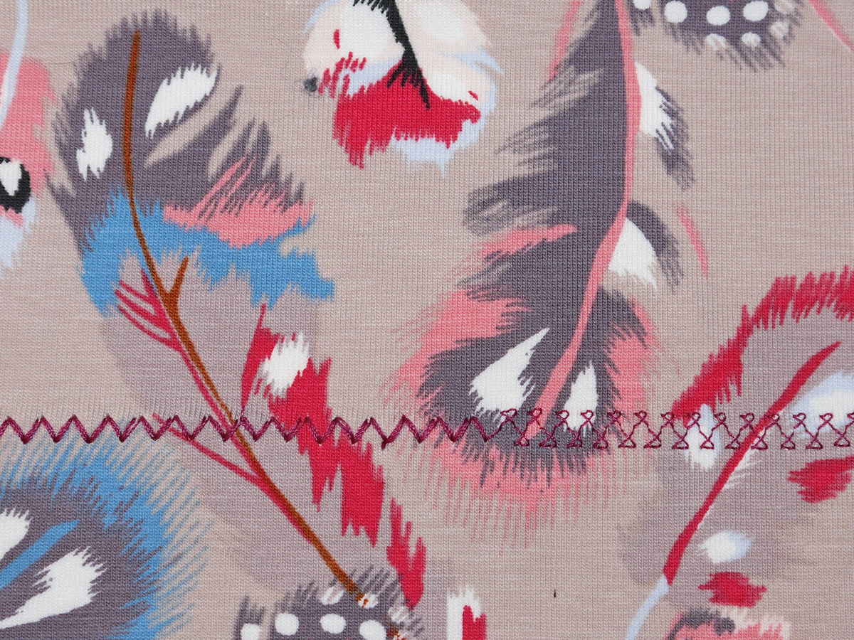 Bei diesem dreifach Stretchstich liegen 3 Stiche dicht und versetzt nebeneinander. So ist die Naht hochelastisch und kann nicht reißen.