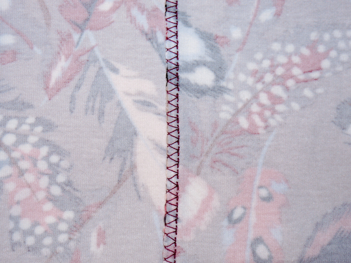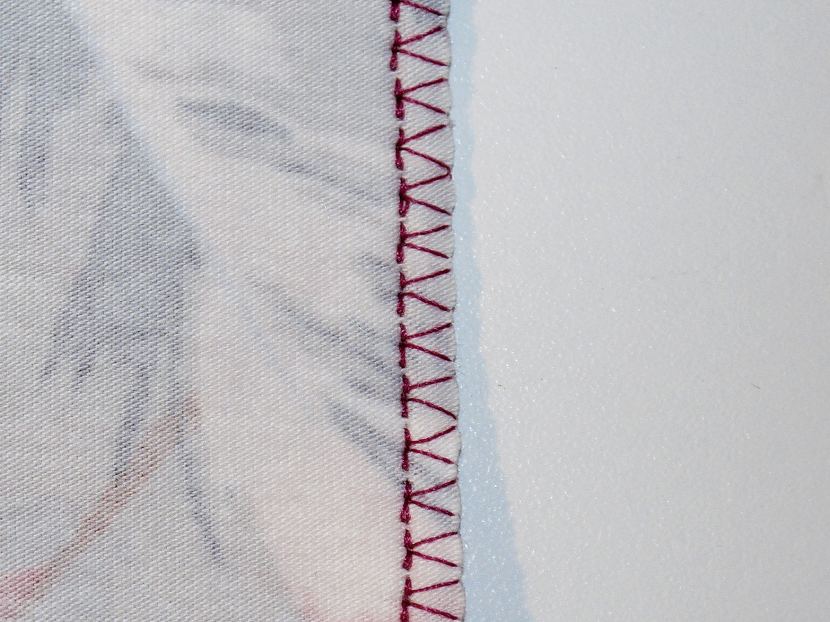 Soll es eine flache, auseinander gebügelte Naht ergeben, müssen die Schnittteile erst versäubert werden. Wir haben den Überwendlingstich Nr. 14 mit einer Breite von 5,0 mm und einer Länge von 2,5 mm gewählt.