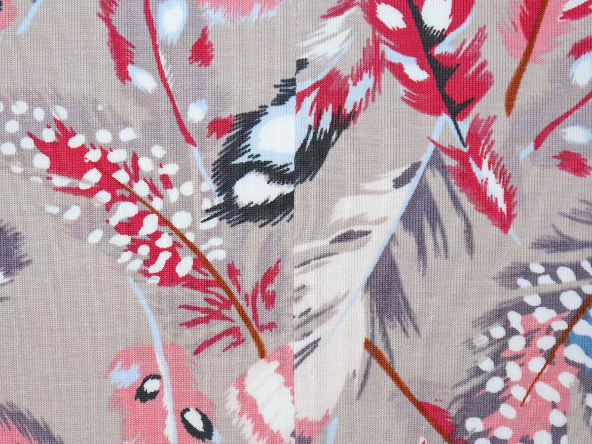 Egal aus welchem Grundmaterial der Jersey besteht, oft ist ihm ein Anteil von 3 – 5% Elastan beigemischt. Das bewirkt, dass der Stoff sich wieder gut in seine Form zurückzieht. Damit ist er besonders für figurbetonte Modelle geeignet.