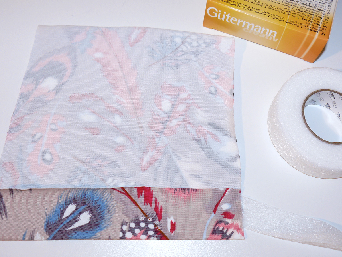 Ist man noch ungeübt im Verarbeiten von Jersey, sollte man vorab die Teile in der Nahtlinie heften. Damit der Faden hinterher nicht rausgezogen werden muss, empfiehlt es sich, mit dem Nähfaden zu heften.