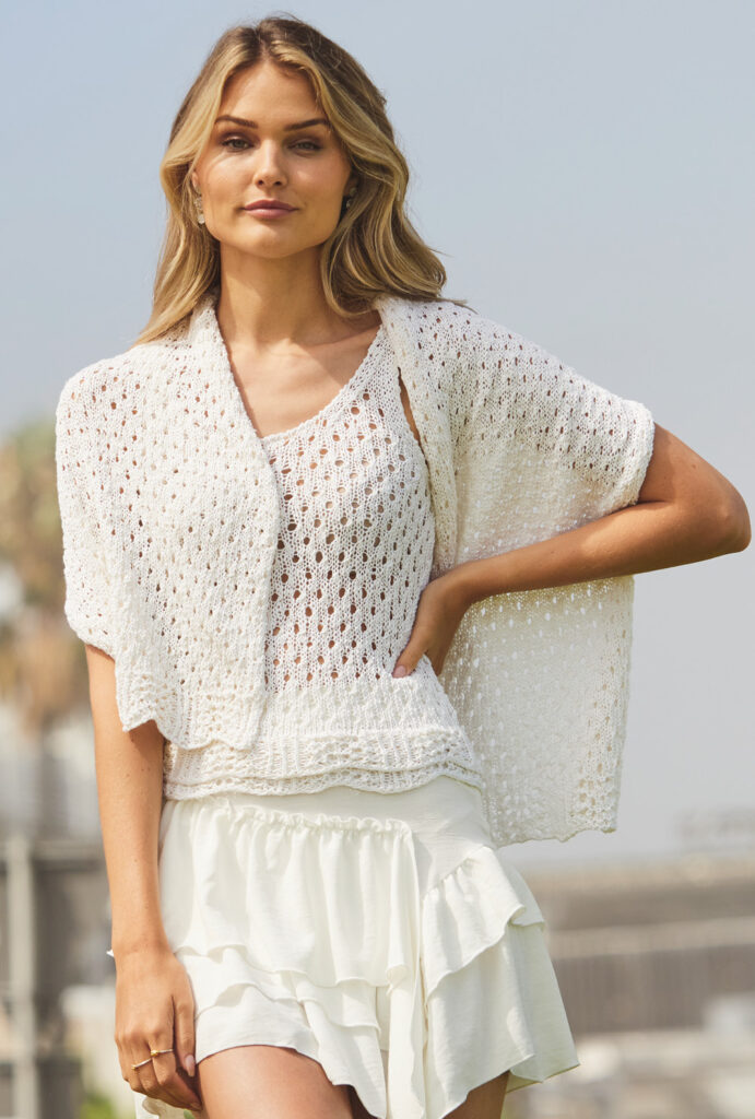 Sabrina Strickjournal Weißes Top und Tuch mit Lochmuster