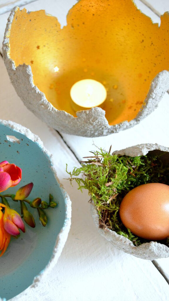 Die fertigen Betonschalen können als Teelichthalter, Pflanztöpfe oder Obst- bzw. Gemüseschalen genutzt werden und machen sicherlich überall eine gute Figur!