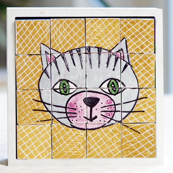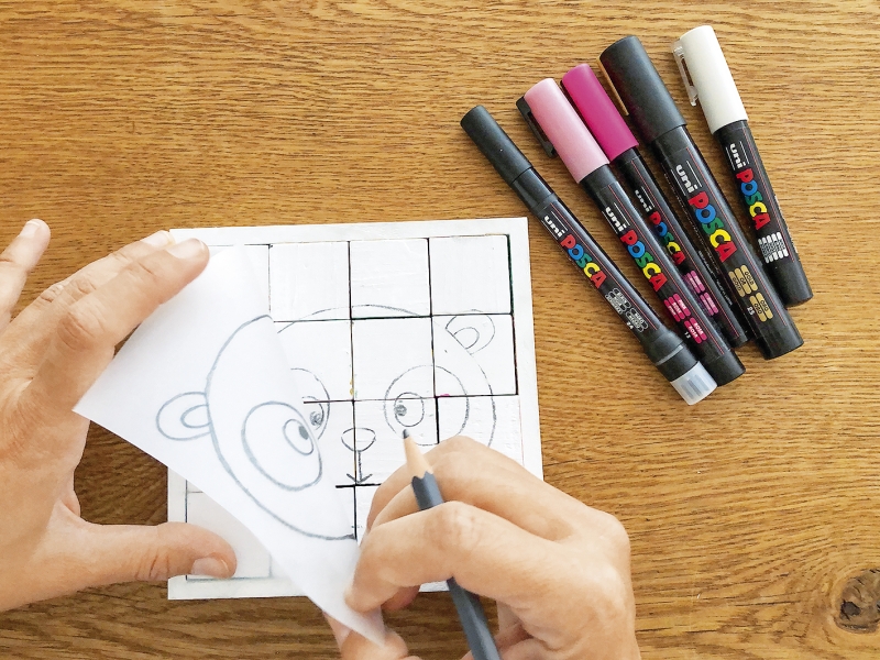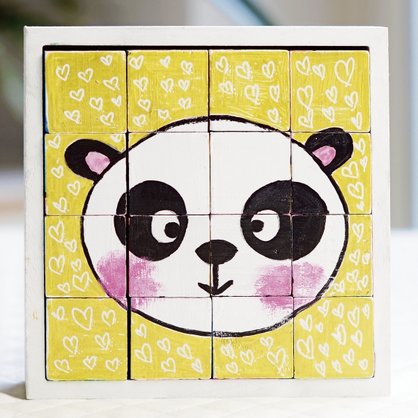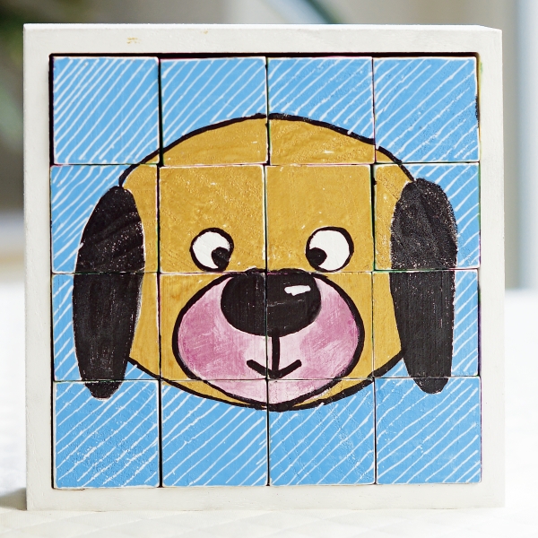 Puzzle-Teile gehen gern auf Wanderschaft und dann ist das Drama im Kinderzimmer groß. Bei den kinderhandfreundlichen Würfeln fällt sofort auf, wenn einer fehlt. Die satten Farben der POSCA- Marker leuchten auf den weiß grundierten Holzwürfeln brilliant und lassen sich prima auftragen.
